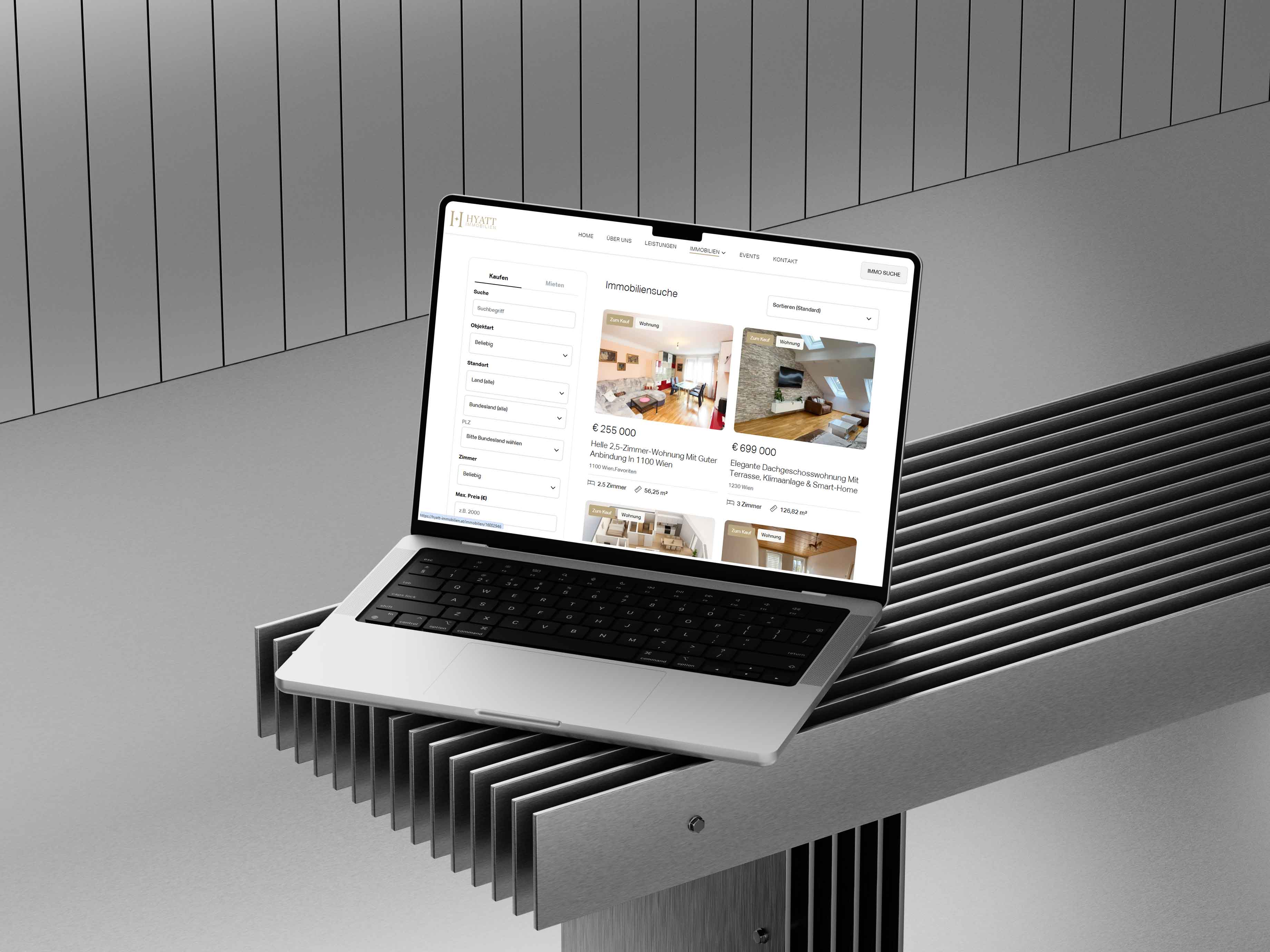 Der neue Auftritt von Hyatt Immobilien beweist, dass sich Standard-Software und individuelles Design nicht ausschließen: Die Justimmo-Tools sind perfekt integriert und sorgen für einen automatisierten, wartungsfreien Immobilienvertrieb.